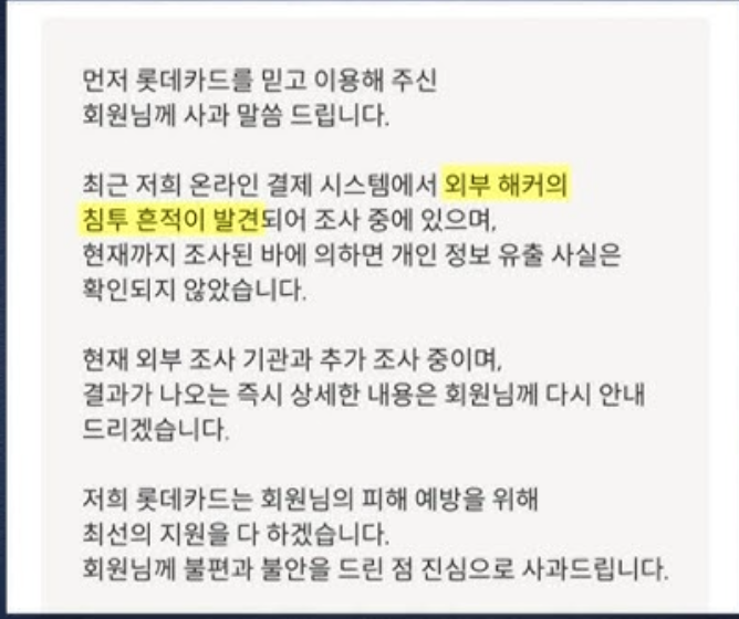 최근 롯데카드 해킹 소식이 전해지면서 많은 이용자들이 불안해하고 있습니다.